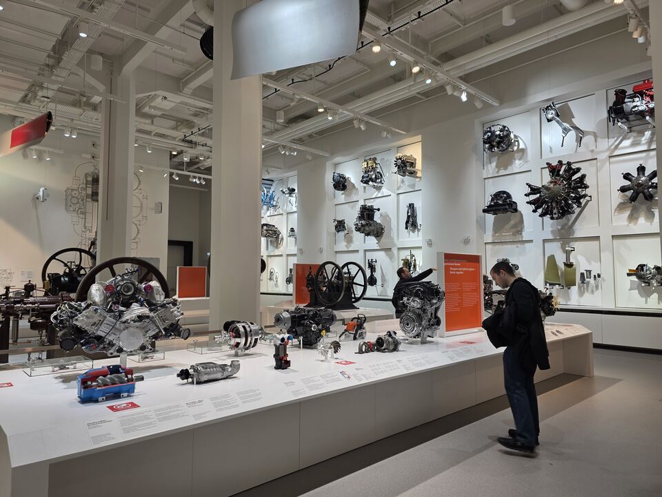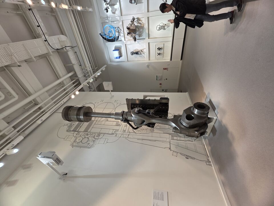 박물관 내부는 압도적입니다. 들어서자마자 거대한 항공기들이 천장에 매달려 있고, 안쪽으로는 V2 로켓 같은 발사체부터 항공, 선박, 차량용 엔진들이 즐비합니다. 특히 선박용 엔진의 커넥팅 로드(Connecting Rod)는 전시 공간을 꽉 채울 정도로 거대해서 입이 다물어지지 않았습니다.