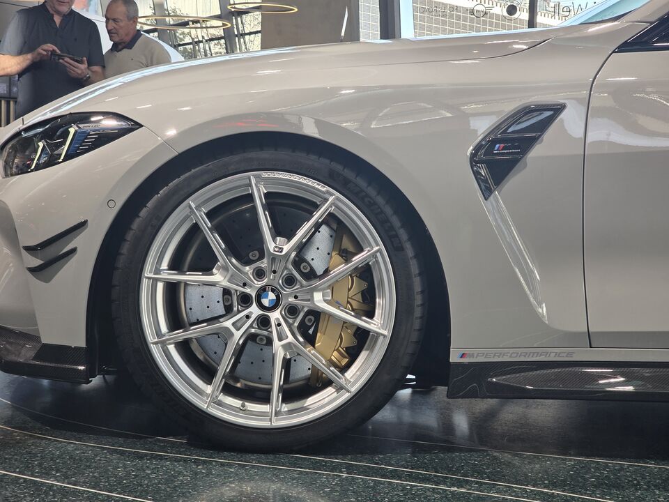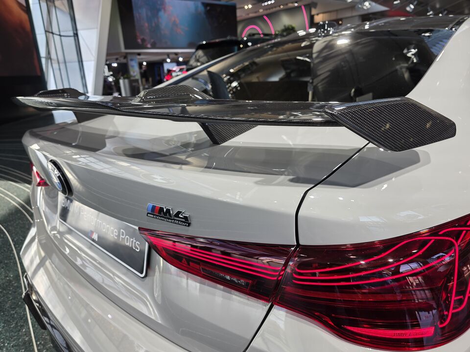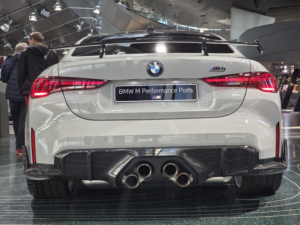 그리고 시선을 강탈한 M4 컴페티션(Competition) 모델. 와… 보면서 감탄이 절로 나왔습니다. 튀지 않는 회색 컬러였지만, 카본 윙과 반짝이는 알루미늄 휠, 그리고 중앙으로 모여있는 4개의 배기구까지. 그 날렵한 자태는 남자의 심장을 뛰게 하기에 충분했습니다.