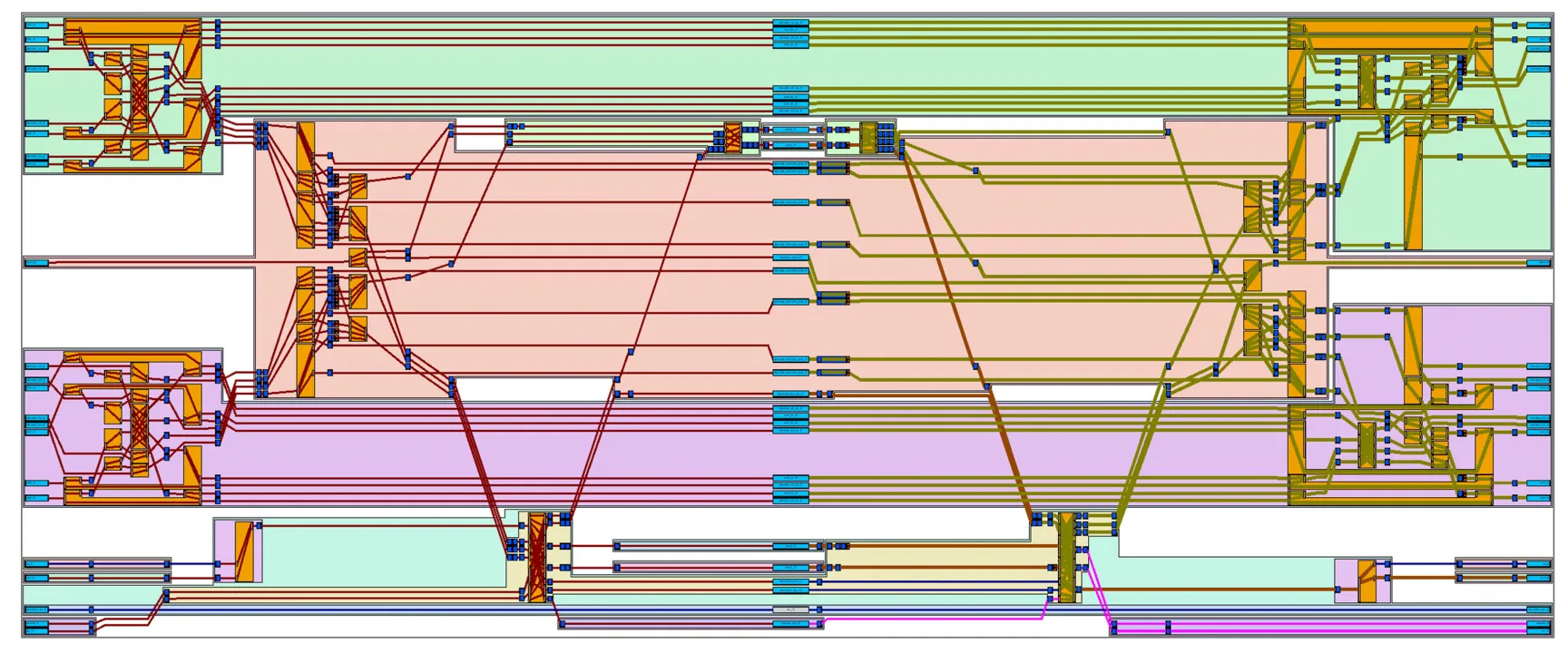 - Outcome: Streamlined Interconnect and Reduced Congestion: This iterative HSTDM optimization and constraint-driven approach dramatically improved routing efficiency. The initial “spaghetti” routing, characterized by interwoven read/write AXI signals chaotically crossing SLRs, was transformed into a cleaner, more structured design with minimized SLR crossings and significantly reduced congestion.