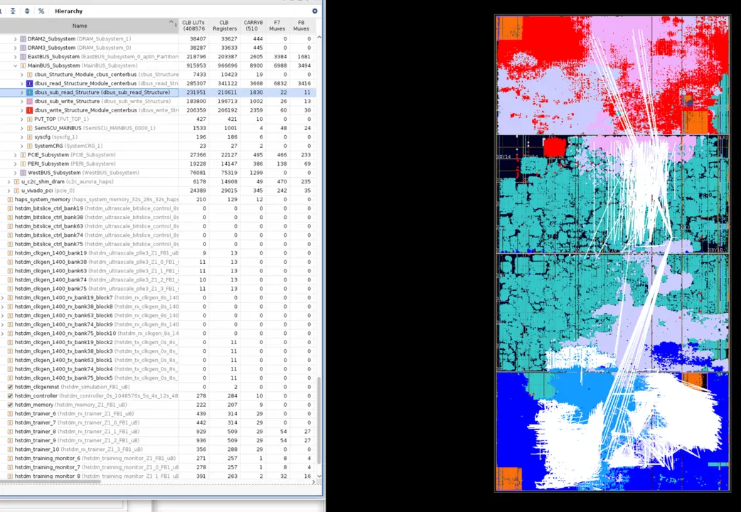 - The Challenge: Managing Inter-FPGA Data Flow via HSTDM: A primary hurdle was efficiently managing the high-bandwidth data streams crossing between FPGAs using Synopsys’ HSTDM (High-Speed Time-Division Multiplexing) technology. Crucially, the physical placement of these HSTDM transceivers within the VU19P FPGAs – specifically, their assignment to optimal SLRs – had a profound impact on routing success.