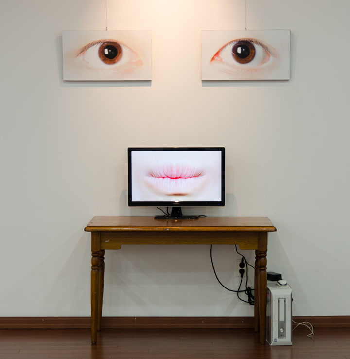 첫 작품 <창>: 서양의 이모티콘이 입 모양으로 감정을 표현한다는 점에 착안해 입 모양만 바뀐 사진들을 나열했다.
