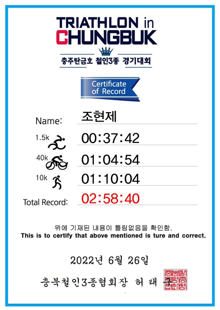이름도 못 여쭤보고 헤어져서 내내 마음에 걸렸는데, 드라마처럼 실제 충주 대회장에서 그분을 다시 마주쳐 감사 인사를 전할 수 있었다. (세상은 좁고 철인은 더 좁다.)
