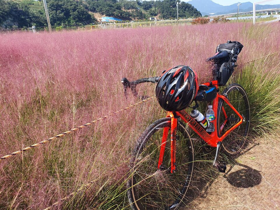 게스트하우스에 있는 공구로 자전거를 정비하고 출발했다. 낙단보, 칠곡보를 지나며 만난 풍경은 차를 타고 다닐 땐 절대 볼 수 없는 것들이었다. 핑크뮬리가 흐드러진 들판, 가을바람에 흔들리는 코스모스, 강변 정자의 고즈넉함.