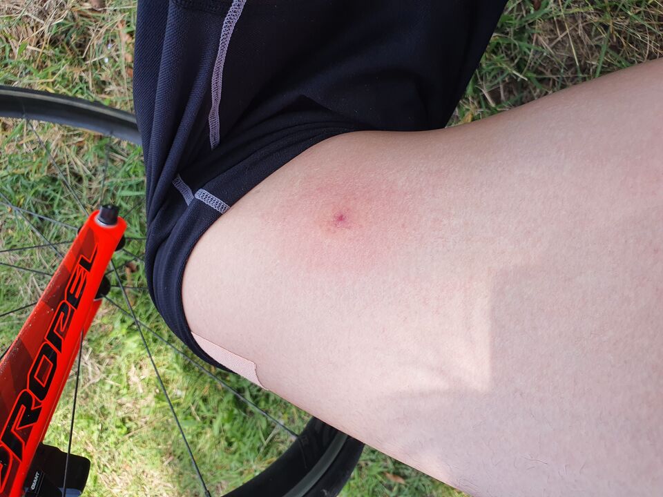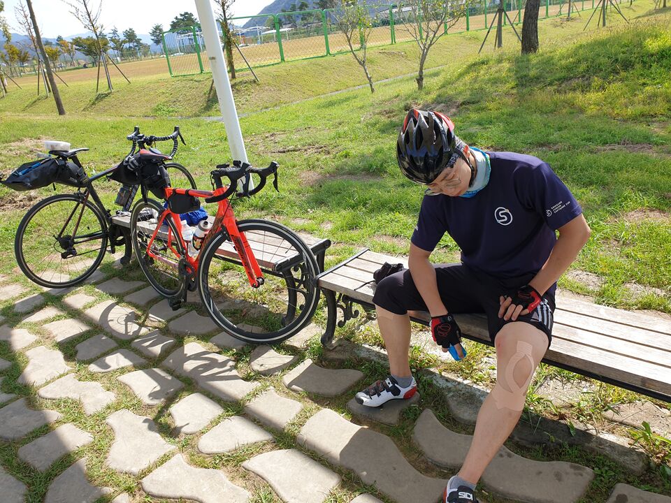거의 다 왔다고 방심했을 때, 사고가 터졌다. 자전거를 타는데 고글에 ‘탁’하고 무언가 묵직한 게 부딪혔다. 돌이 튀었나 싶었는데, 갑자기 허벅지가 불타는 듯이 아파왔다. 멈춰서 보니 정체불명의 벌레에 물린(혹은 쏘인) 것 같았다. 순식간에 붓고 열이 펄펄 끓었다. 부산 시내에 진입했으니 지하철을 탈 수도 있었지만, 여기까지 온 게 아까웠다. 결국 한 발로 페달링을 하며 쩔뚝거리는 자전거로 완주에 성공했다.